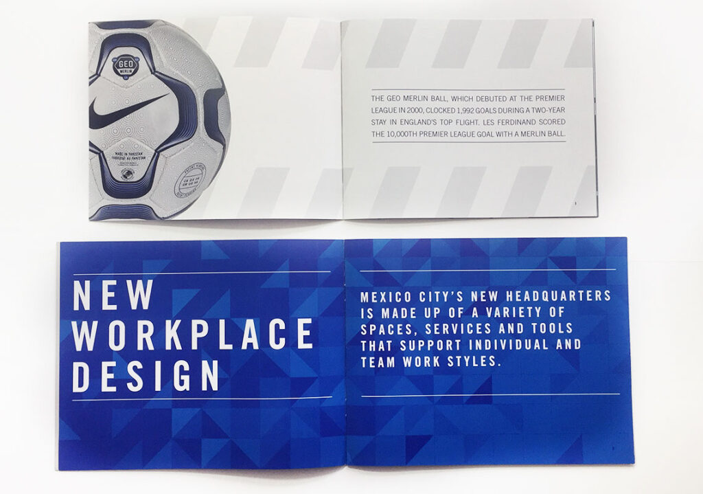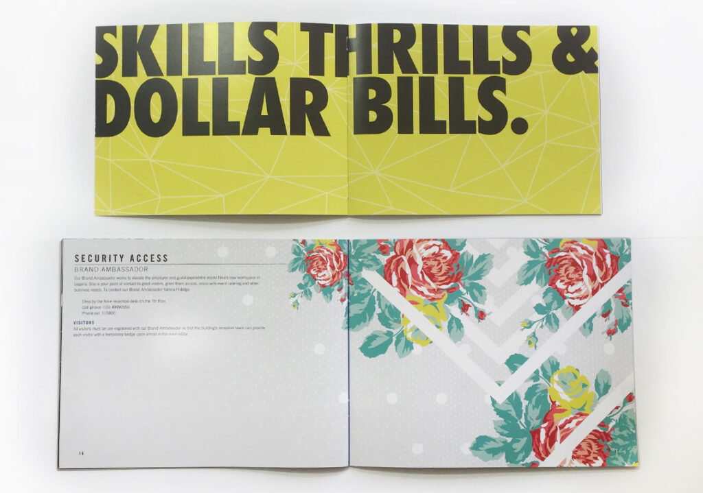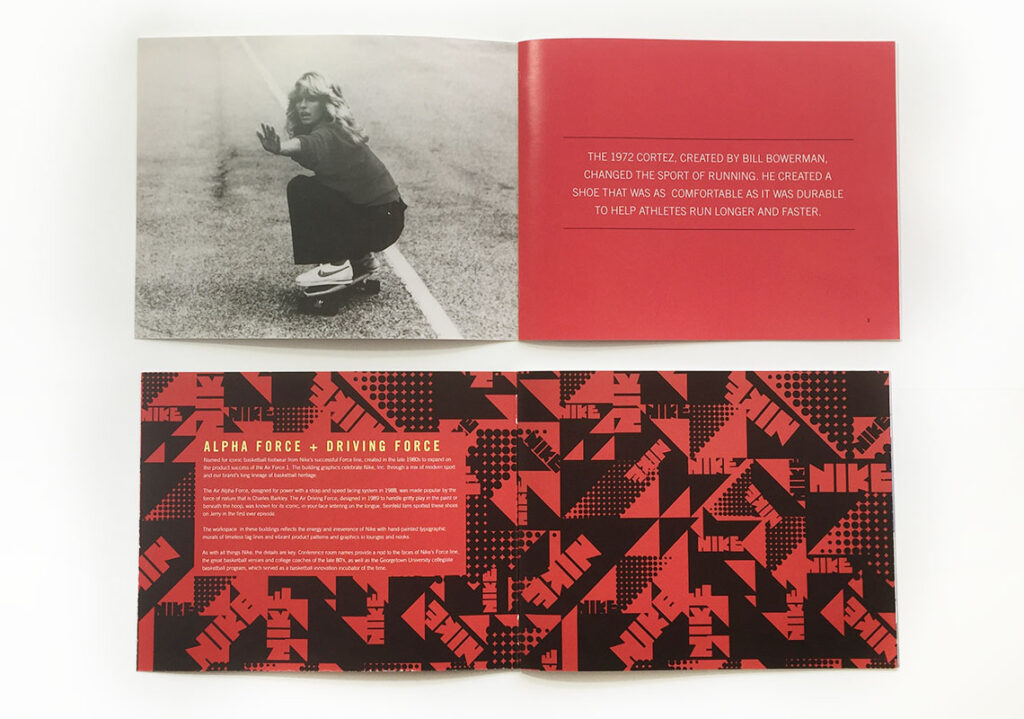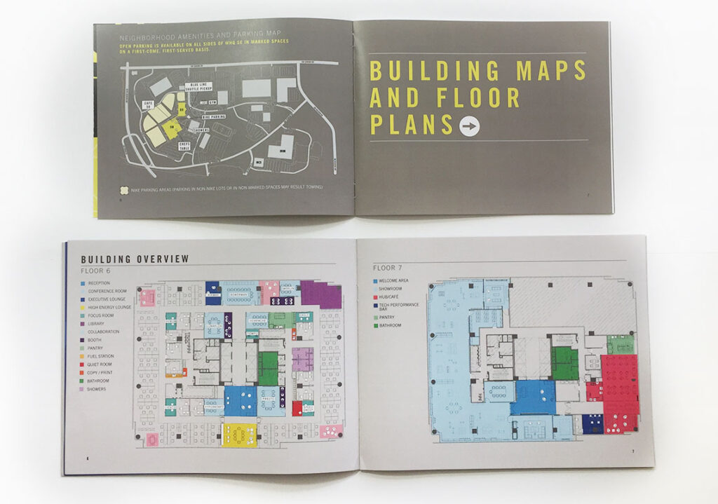 As part of Nike's World Headquarters expansion and the transformation of existing workspaces, a dedicated department emerged with a focus on enhancing the employee experience—Workplace Design and Connectivity. Serving as a designer within the communications team of this innovative department, our primary mission was to facilitate the seamless transition of large teams from their old workspaces to newly renovated or newly constructed ones. Our team played a pivotal role in developing and creating communications that guided and informed employees throughout this significant change. A notable contribution to this effort is the collection of informative books, tailored to provide valuable insights about the team's new workspace and location. The design of these booklets not only serves a functional purpose but also reflects the essence of the team's role. They incorporate artistic elements and design features inspired by the new office space designs, creating a cohesive and visually engaging representation of the evolving workplace environment.