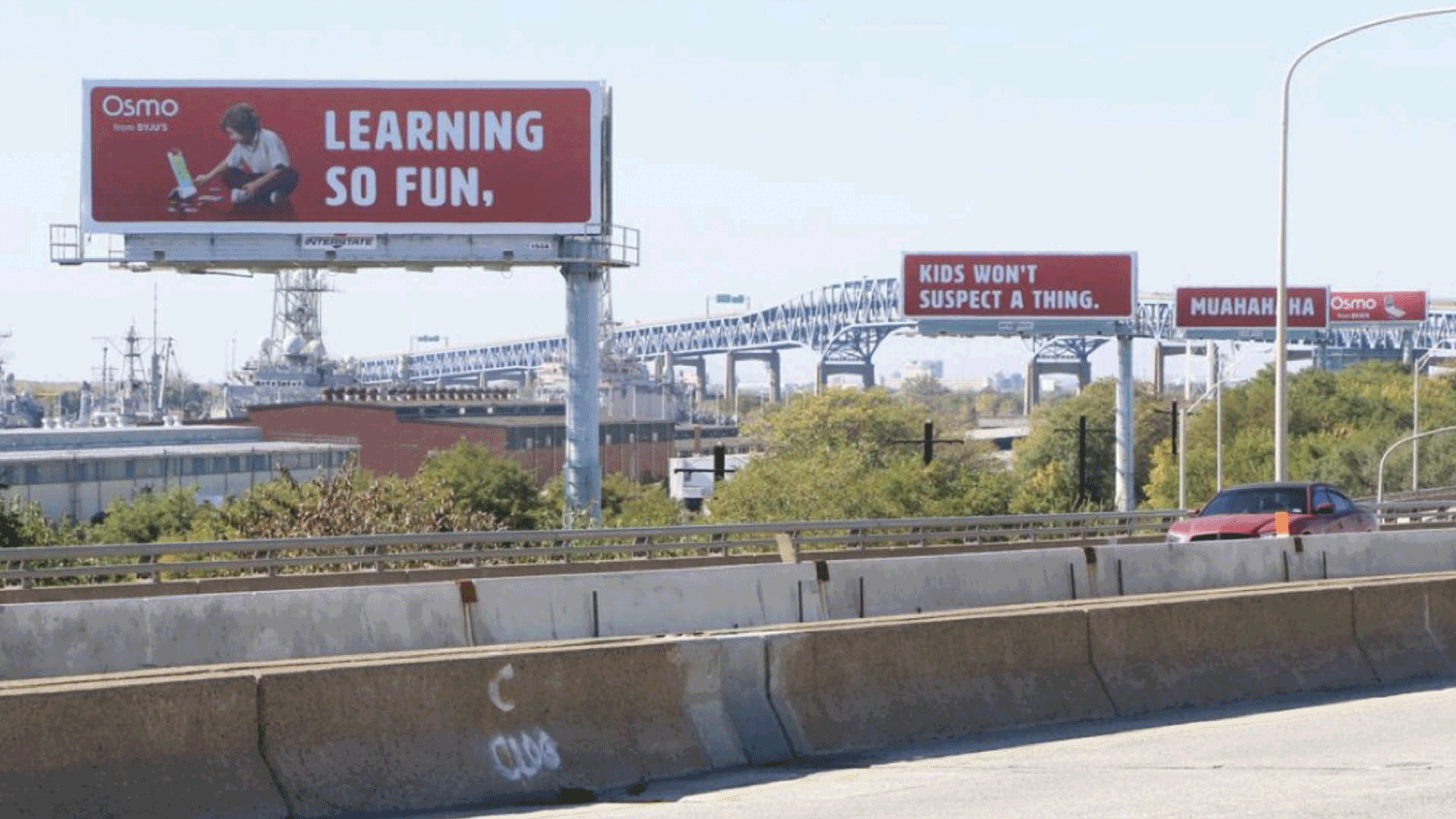 OSMO, a children's educational brand, is dedicated to bridging the gap between digital and traditional learning experiences. Following the success of a television and online video ad spot featuring a group of mischievous parents tricking their children into learning, our team embarked on an Out Of Home (OOH) campaign. As a senior designer on the OOH campaign, my responsibility was to translate established key art into various forms across a diverse range of placements. One standout placement was secured for the NASDAQ board in Times Square, adding a high-profile dimension to our campaign. In this capacity, I played a pivotal role in creating a visually compelling and succinct 15-second spot. This involved not only adapting the key art but also contributing to the visual design and storyboarding process. The aim was to capture the essence of OSMO's innovative approach to education and engage a wide audience in the heart of Times Square.